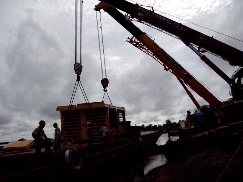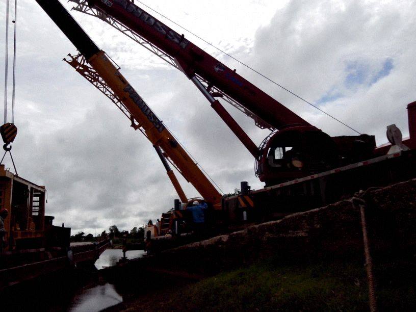 Serviço de locação de guindaste para construção civil com içamento de vigas e estruturas metálicas de grande porte. Operação com guindaste até 550 toneladas, planejamento logístico e cumprimento rigoroso do cronograma da obra.